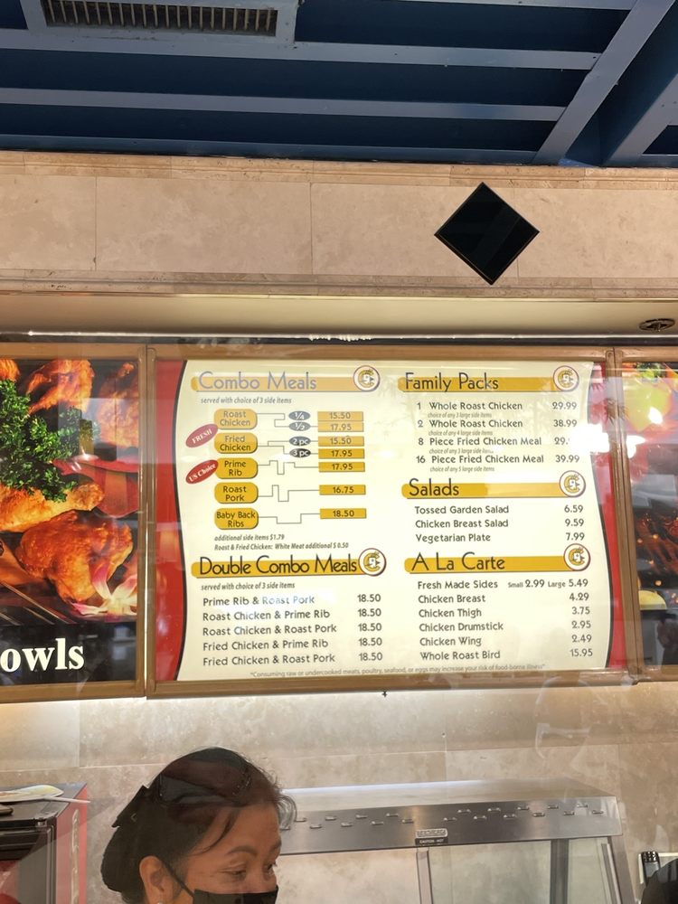 Introducing the menu at Lahaina Chicken Company, located in Ala Moana, Hawaii, offers a variety of mouth-watering options, including roasted chicken, prime rib, and delicious sides like mashed potatoes and gravy, Mac and cheese, and mushroom risotto. Customers rave about the juicy and well-seasoned chicken, while some prefer the tender prime rib. The chicken wings are a must-try, with reviewers touting them as huge, crispy, and seasoned just right. The food court setting provides a casual yet vibrant atmosphere, perfect for a quick and satisfying meal. Overall, Lahaina Chicken Company stands out for its diverse menu, friendly staff, and affordable prices, making it a popular choice for locals and visitors alike. Whether you're craving classic comfort food or looking to try something new, Lahaina Chicken Company offers a tempting array of options worth exploring.